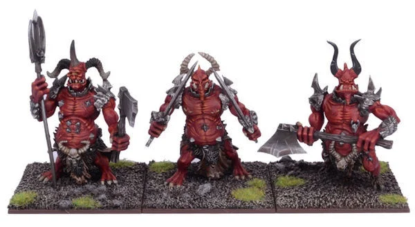 Larger and more powerful cousins to the Lower Abyssals, these rage-filled creatures tend, thankfully, to a more solitary life. Occasionally though, they will band together to fight a common foe. With their size and power, combined with their unnatural resilience, they are a force to be reckoned with. This set contains 3 multi-part metal Moloch miniatures, including: Head Options Weapon Options 50mm Bases