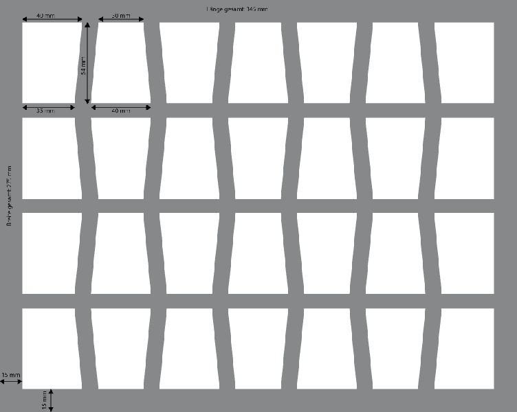 Foam tray with c-slot design. The slots have a conical footprint. We have the slots arranged space-saving and optimizing the distances between the slots. The 40 mm depth of the foam is result from 10 mm foam bottom and a foam tray with 30 mm effective depth.