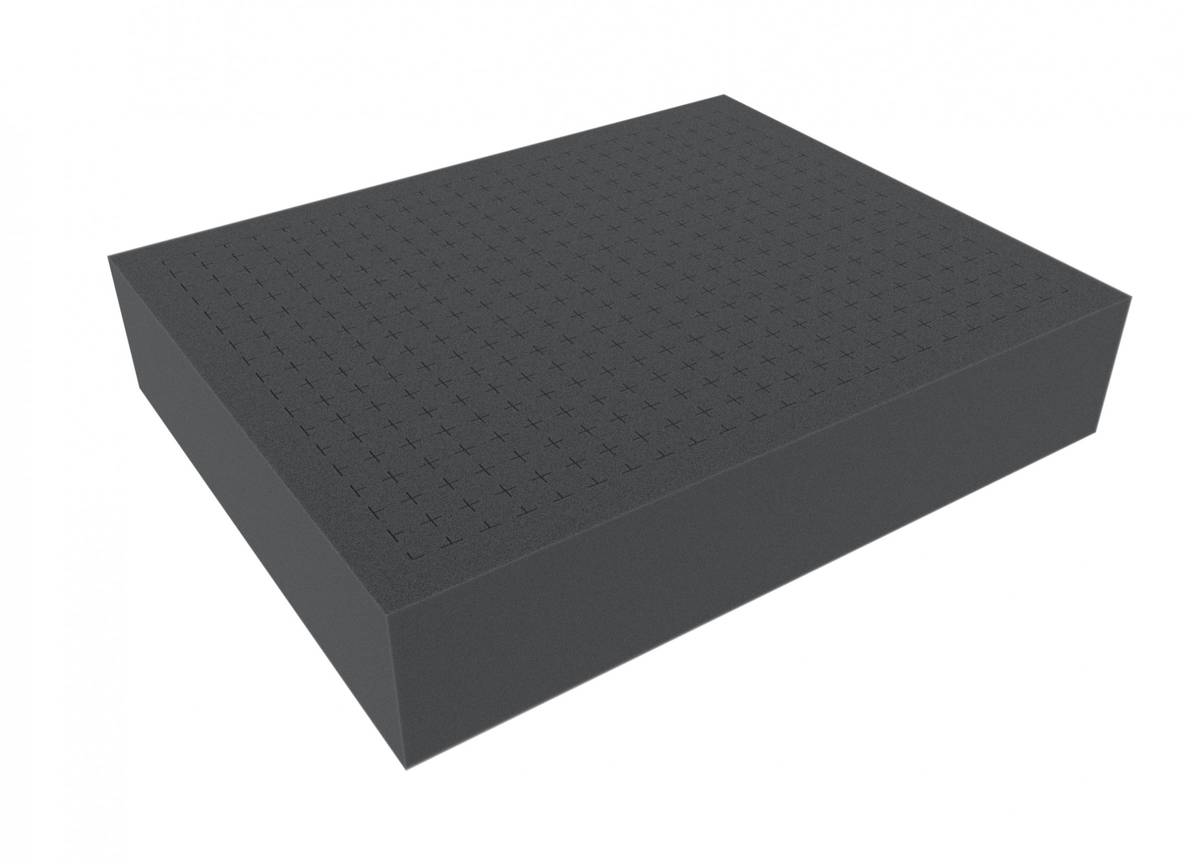 With Feldherr Pick and Pluck foam, you can effortlessly create an individual foam tray for your needs. The pre-cut grid offers a suitable solution for a variety of items, like photo cases, bulky objects, or miniatures. The Pick and Pluck foam is easy and quick to handle. By separating individual foam blocks, the foam can be easily adapted to the individual shape of the items to be packaged. You can remove the perforated foam without using any tools, and all by hand. This 70 mm high Full-Size Pick and Pluck foam features a perforated 14 mm x 14 mm grid and is ideal for vulnerable items like large tabletop miniatures, flatware, and tools. The Pre-cubed foam is completely die-cut over the entire height. The foam base is available separately. To ensure the optimal protection of the packaged goods from below, we recommend using a 10 mm strong foam base like article FS010B. The foam base for the Pre-cubed foam is available separately. Additional stability is provided by the all-around, approx. 15 mm broad border of the insert. The Full-Size Pick and Pluck foam has the dimensions: 345 mm x 275 mm x 70 mm total height. Pre-punched grid with 14 mm x 14 mm size. The tray is completely punched through. The foam base is sold separately. Approx. 15 mm thick, surrounding edge for additional stability. piece density 23,0 kg/m³ (+/- 2,0) chlorine and acid free Made in Germany