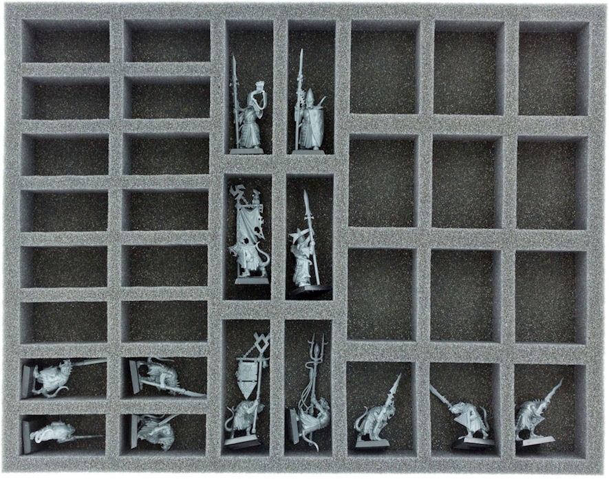 Dimension Feldherr Full-Size (FS) Foam Trays: 34,5 cm x 27,5 cm x 35 mm. The 35 mm depth of the foam is result from 10 mm foam base and foam tray with 25 mm effective thickness