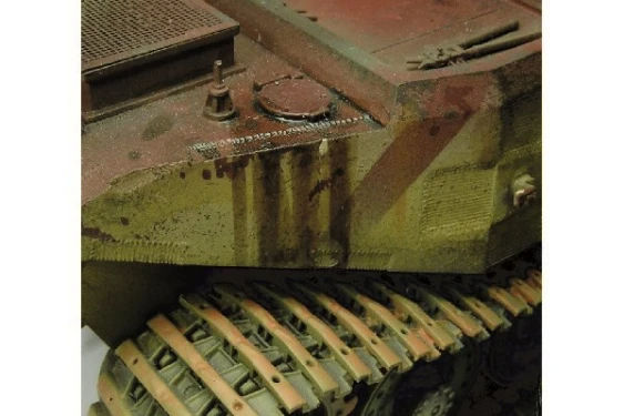 Applications: In combat, the refueling of tanks and trucks took place in the field, and the crews used pails, funnels, sections of hose, etc. for the job; the fuel was spilled all over, leaving characteristic traces on the vehicles.