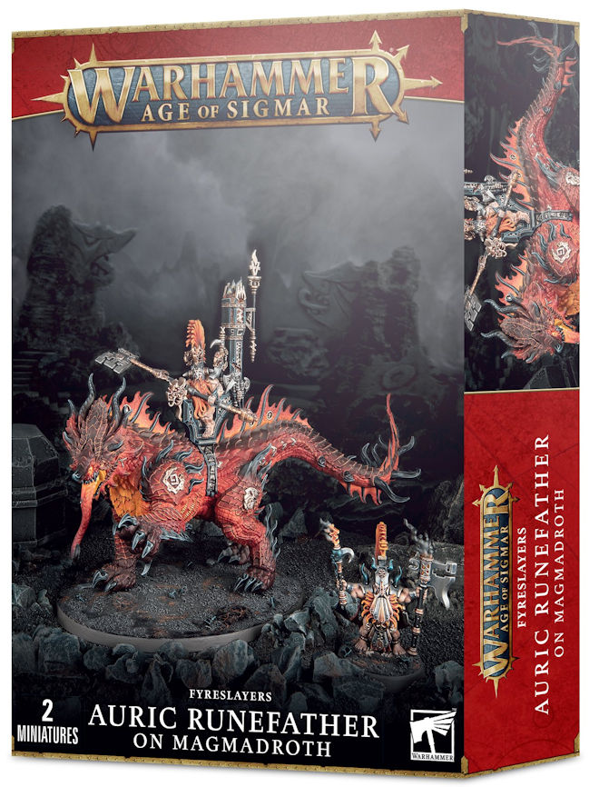 Lead your Fyreslayer army with a mighty Hero atop a flame-spewing Behemoth Inspire your warriors as Lord of the Lodge Three Heroes in one kit - also includes an Auric Runeson and Auric Runesmiter to be assembled on foot