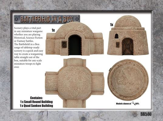 Desert Buildings contains two domed hovels, a small domed building and a larger quad-building that hints at a larger underground structure.