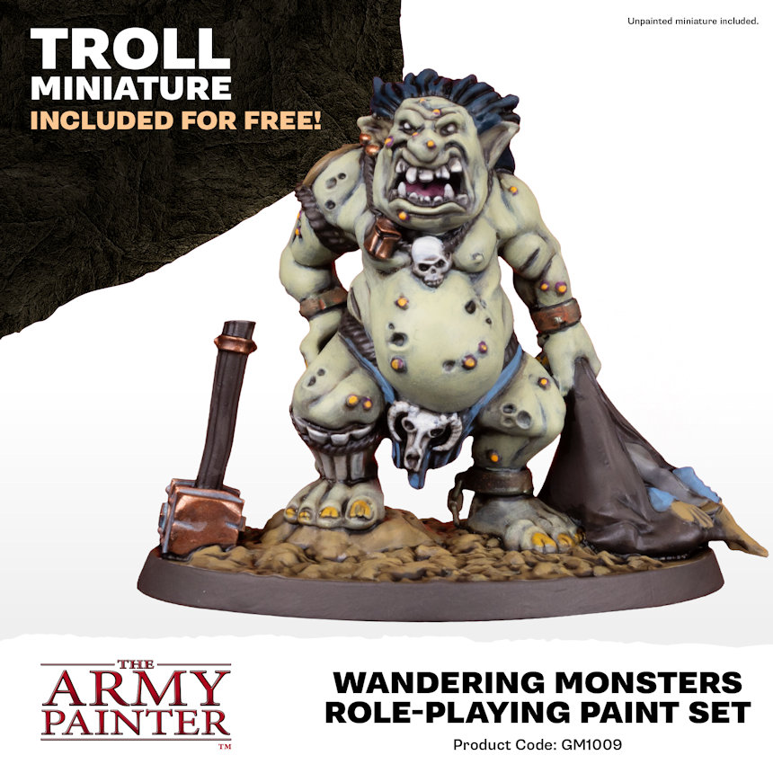 Nothing brings a fantasy world more to life than the creatures that inhabit it. Playing with painted miniatures will level up your whole role-playing experience, bringing your adventure to life on the tabletop in front of you! This monstrous paint set contains a highly detailed troll miniature, a Basecoat Brush, a painting guide, and 15 essential Warpaints FanaticTM