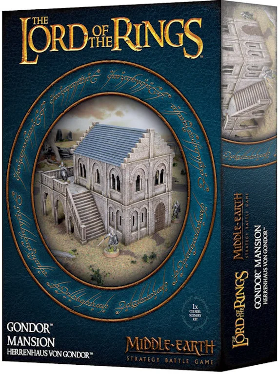 The Gondor Mansion is modular, allowing you to assemble the kit in a variety of ways to create your own scenery, or combine multiple kits to create an even larger building or estate. This kit comprises 188 plastic components. This scenery is supplied unpainted and requires assembly