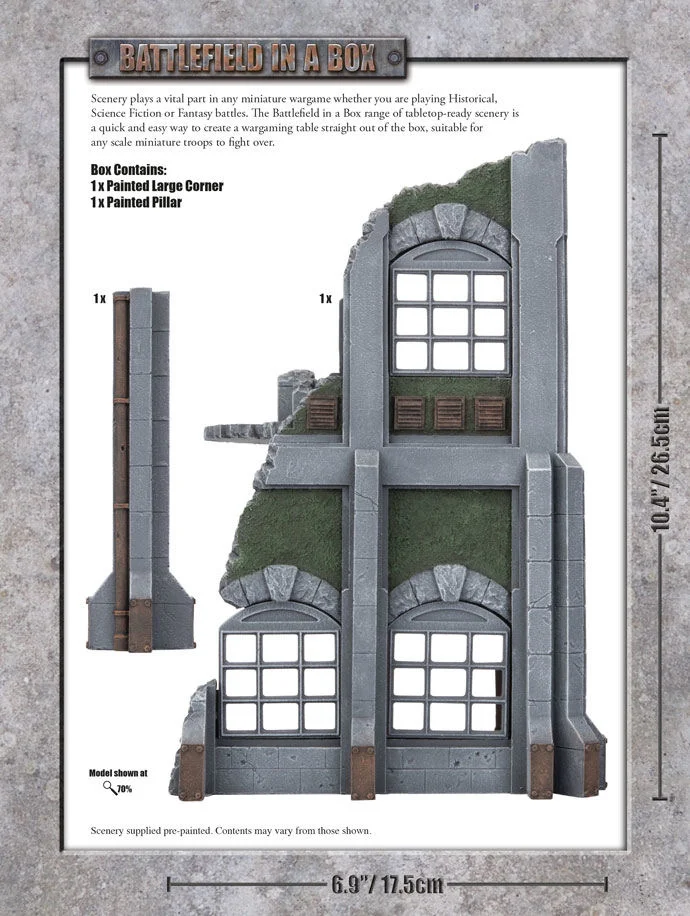 The Gothic Ruins is perfect for any Steampunk table, or perhaps someone in the grim dark future. Combine with the rest of the range to complete a truely unique looking tabletop where no two pieces of terrain are the same. Contains one painted Large Gothic Industrial Corner.