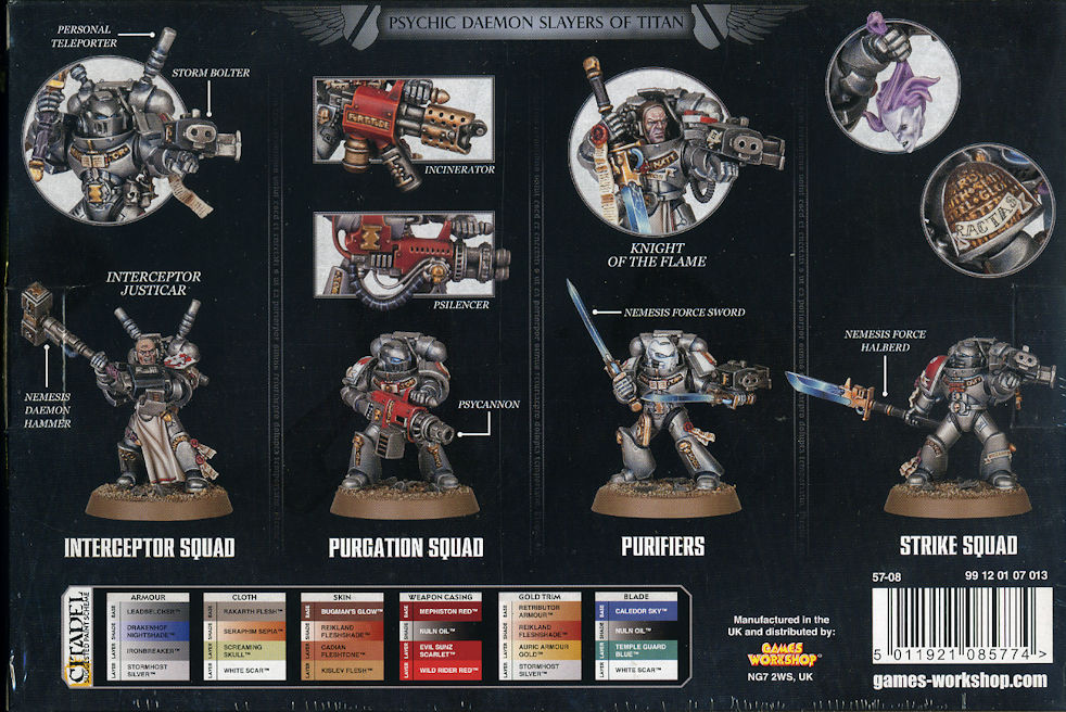 Please note: these miniatures can also be assembled as a Grey Knight Interceptor Squad, a Grey Knight Purifier Squad or a Grey Knight Purgation Squad.