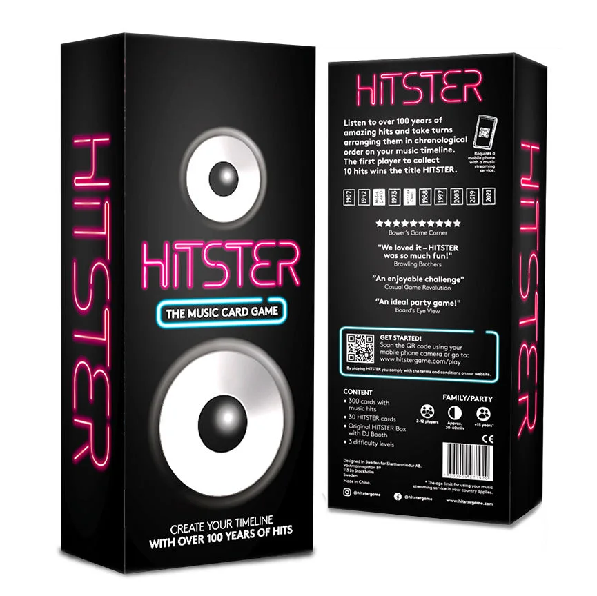 HITSTER är ett spel och soundtrack för din fest i ett där du och dina vänner gör en gemensam musiktidsresa. Den här versionen av HITSTER innehåller: