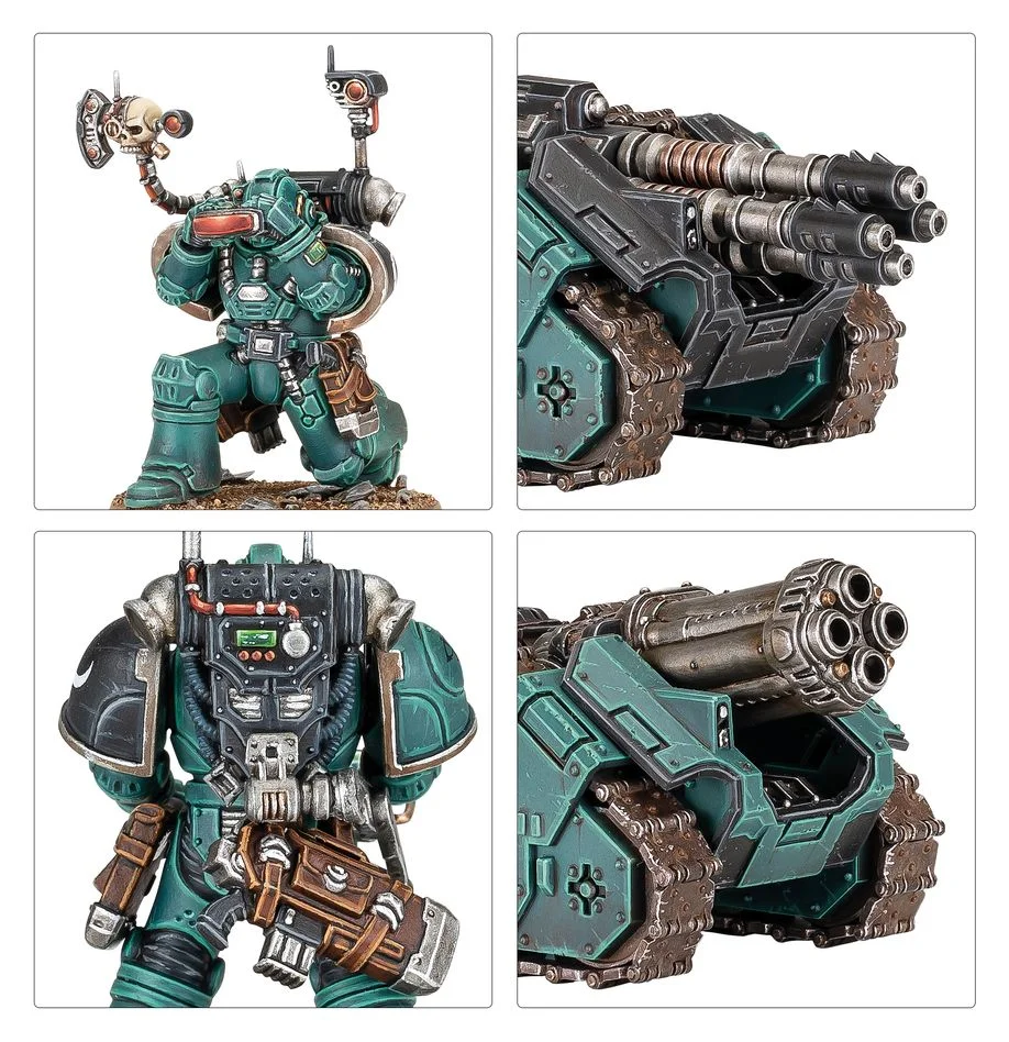 Rapier carriers are semi-automated tracked weapons carriers with on-board targeting systems and power generators. They are designed to mount support weaponry too large and cumbersome for even the superhuman strength of a Space Marine to carry. Common armaments include laser destroyer arrays for anti-armour duties, and so-called ‘thudd gun’ multi-launchers for siege warfare and suppressive fire.