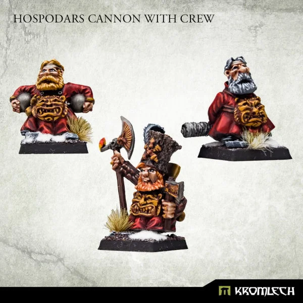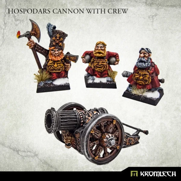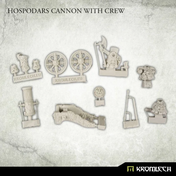 This set contains squad of four highly detailed, miniatures of Hospodars Cannon with crew - members of the warror's guild chosen to protect the watchtowers at borders. Supplied unassembled and unpainted. Designed to fit 28mm heroic scale wargames. Inside the package you'll find: - three multi-part Hospodars crewmen - one multi-part Cannon - three 20mm plastic square bases.