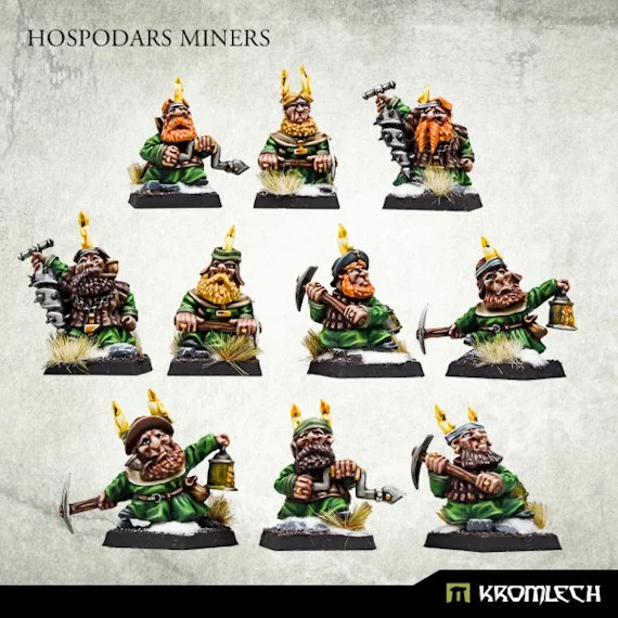 This set contains squad of ten highly detailed, slavic Dwarves of Hospodars tribe - Miners skilled in underground combat. Supplied unassembled and unpainted. Designed to fit 28mm heroic scale wargames. Inside the package you'll find: - ten multi-part Hospodars Miners armed with pickaxes and drills - ten 20mm plastic square bases.