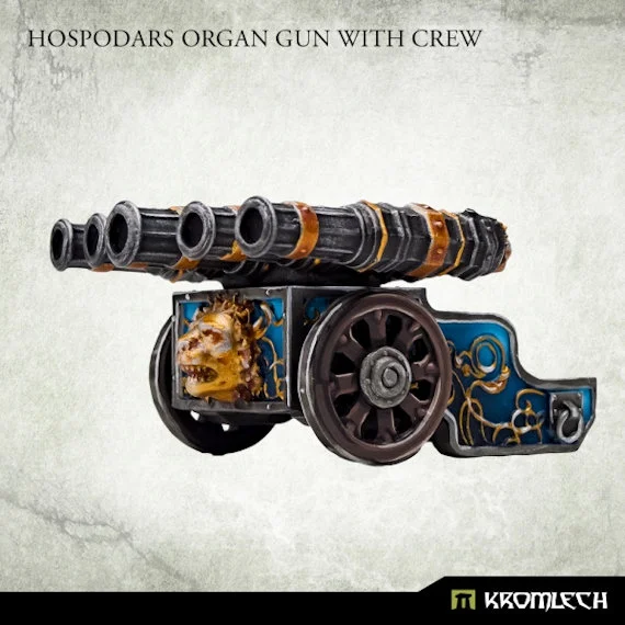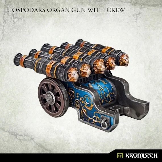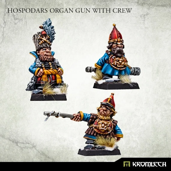 This set contains squad of four highly detailed, miniatures of Hospodars Cannon with crew - members of the gunsmiths' guild chosen to guard most important places in Hospodars' realm. Supplied unassembled and unpainted. Designed to fit 28mm heroic scale wargames. Inside the package you'll find: - three multi-part Hospodars crewmen - one multi-part Organ Gun - three 20mm plastic square bases.