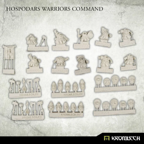 This set contains squad of ten highly detailed, slavic Dwarves of Hospodars tribe - mighty clansmen, who protect nothern borders of their kingdom. Supplied unassembled and unpainted. Designed to fit 28mm heroic scale wargames. Inside the package you'll find: - one Warrior Champion - one Warrior Musician - one Warrior Standard Bearer - seven multi-part Hospodars Warriors with axes - ten 20mm plastic square bases.