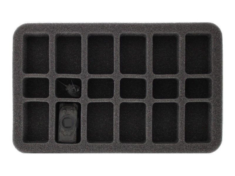 Special Foam Tray for all Flames of War (FoW) Players!. The tray hold 12 medium based FoW Miniatures and 6 small based Miniatures.