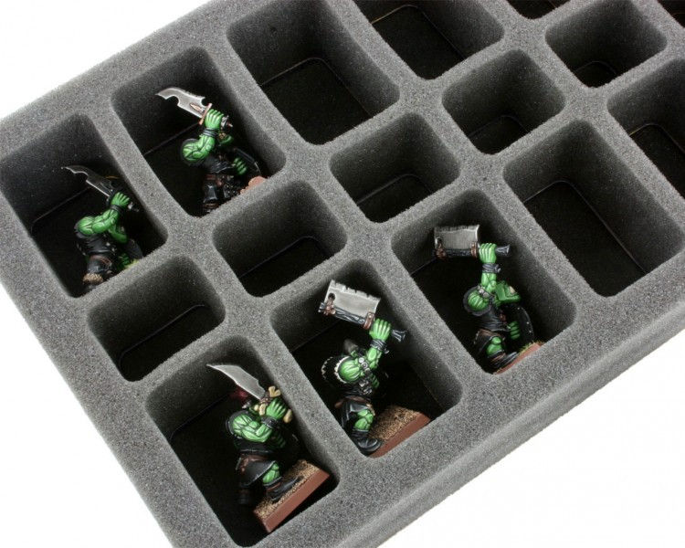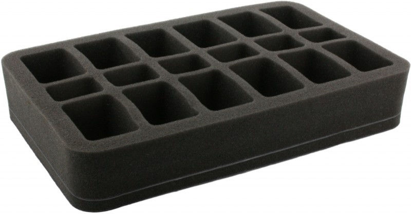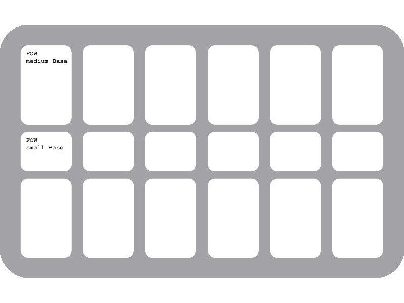 Special Foam Tray for all Flames of War (FoW) Players!. The tray hold 12 medium based FoW Miniatures and 6 small based Miniatures. Ready to use - glued 10 mm foam base. ​The 50 mm depth of the foam is result from 10 mm foam base and slot foam tray with 40 mm effective depth.