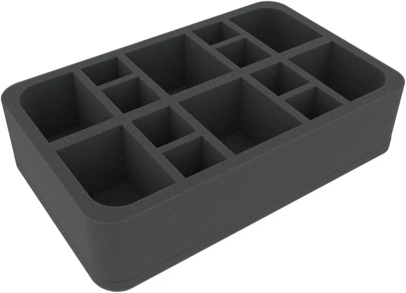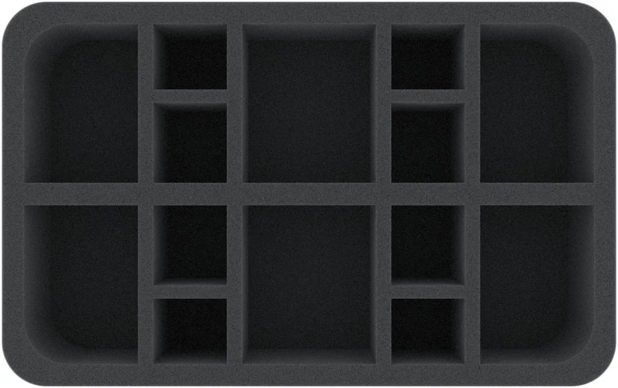 The individual compartments have a usable height of 55 mm. A 10 mm thick foam base adds the mat up to a total height of 65 mm.