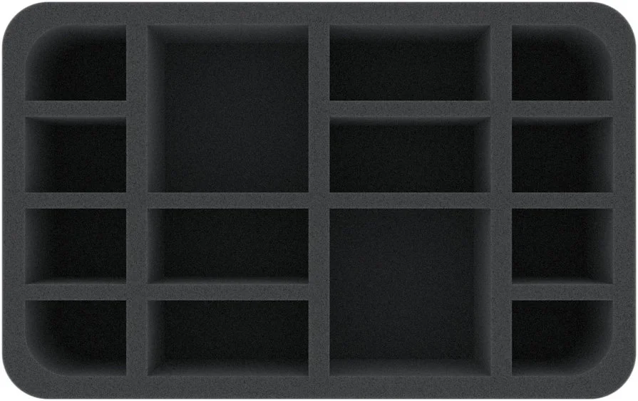 The foam tray provides a safe shelter for all miniatures from the expansion. The two tall Ice Wyrms will get the big compartments. The two Dark Minotaurs, as well as the heroes One Fist and Steelhorns fit into the medium-sized ones. The five Shades and the heroes Karnon and Arvel Worldwalker are distributed into the smaller compartments. The miniature-precise cutting prevents the figures from slipping around and colliding during transport. This will protect painted figures from abrasion. Sensitive details, such as the claws and cloth of the Shades, also remain undamaged.