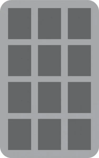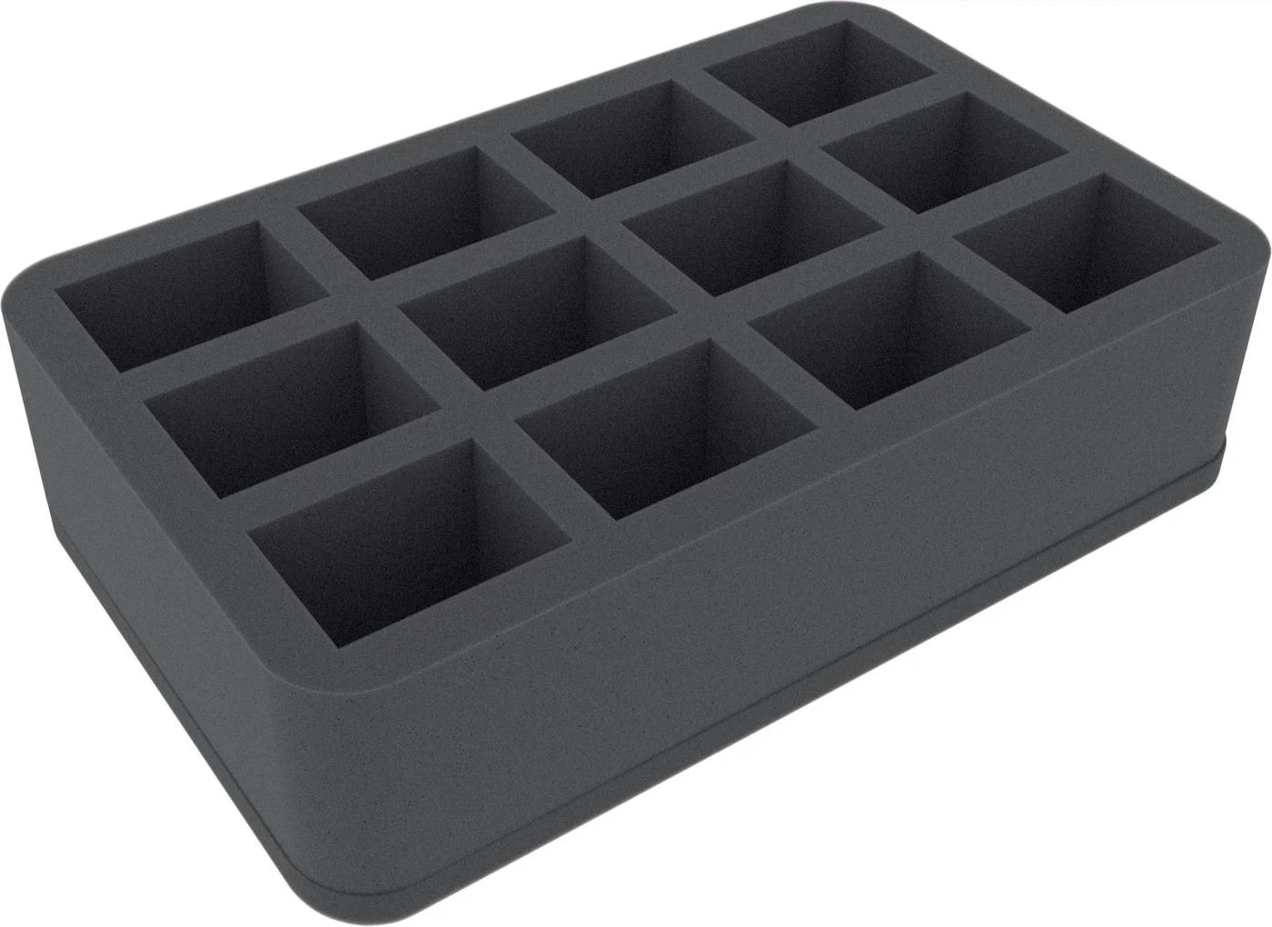 Foam tray with 12 large cut-outs. Cut out dimension: 54mm x 41 mm - fits nearly all large miniatures on 30 and 40 mm base. Ready to use - glued 10 mm foam base. ​The 70 mm depth of the foam is result from 10 mm foam base and slot foam tray with 60 mm effective depth.