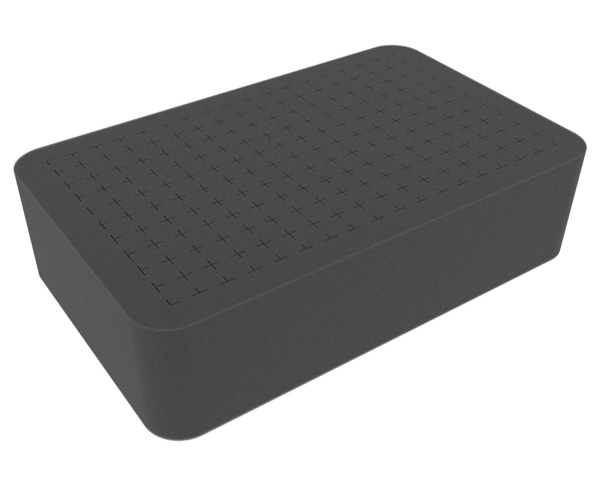 The foam base for the Pre-cubed foam is available separately. Additional stability is provided by the all-around, approx. 15 mm broad border of the insert. The Half Pick and Pluck foam has the dimensions: 275 mm x 172 mm x 70 mm total height. Pre-punched grid with 14 mm x 14 mm size. The tray is completely punched through. The foam base is sold separately. Approx. 15 mm thick, surrounding edge for additional stability. piece density 23,0 kg/m³ (+/- 2,0) chlorine and acid free Made in Germany