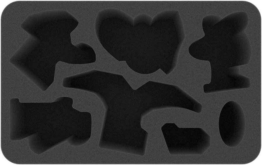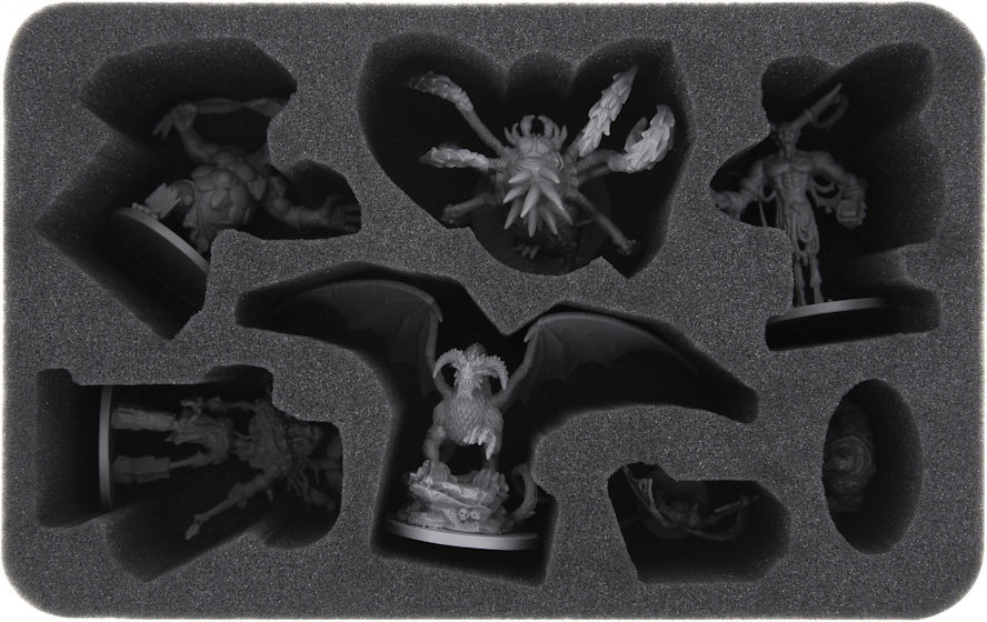 The foam tray is divided into 7 compartments, which are exactly tailored to the miniatures. Completely embedded in soft foam, the figures will not slide around or collide with each other during transport. Wouldn't it be particularly annoying if the paint flakes off after all this time and money you put into painting? Or even worse, the Lindworm Queen's wings bend because she was badly stored. The mat provides optimum protection against unfortunate damage during transport or storage of your figures.
