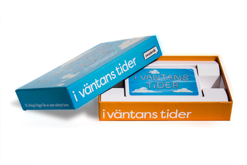 Planerar ni att skaffa barn? Vad kul! Här är frågorna ni inte visste att ni skulle ställa er! Att skaffa barn är kanske det största och mest omvälvande vi gör i livet. Det tycker vi är värt en pratstund! "I väntans tider" hjälper blivande föräldrar att förbereda sig på praktiska och livsbejakande frågeställningar inför sitt kommande nya liv - allt samlat i en och samma ask. Prata, lyssna, skratta och fundera! Under resans gång samlar du och din partner poäng och hittar på kul saker ihop - allt för att teama ihop er inför ert framtida liv. Korten innehåller frågeställningar som "Hur vill vi att vårt barn ser tillbaka på uppväxten på sin 20-årsdag?", "Hur ser vi på karriären när vi får barn?" och "Nämn några saker du skulle vilja ha gjort eller upplevt inom de närmsta tre åren". Flera av korten innehåller också "tankemoln" som ger er tips på ämnen att prata vidare om. "I väntans tider" är perfekt att använda hemma, på semesterresan eller på vägen till barnbutiken. Recension: "Skönt att få hjälp att komma på vad man bör tänka igenom. Det här är precis ett sånt spel vi behöver för att förbereda oss!" Louise, 34 år "I väntans tider innebar ett enklare sätt att våga komma in på lite känsligare ämnen." Mattias, 37 år