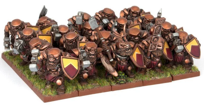 Entire regiments of battle hardened Dwarf Ironclads form the core units of a Dwarf King's Army. They are tough, resilient and well-armoured, ready to take the charge of the enemy and force them back carrying heavy warhammers and iron shields. Ironclads are led into battle by grizzled Champions wearing the winged helmets of Dwarven warriors from an age long forgotten, their unit's battle standard held aloft proudly in the front rank. The Dwarf Ironclad Regiment contains 20 plastic Dwarf Ironclad Warriors, armed with warhammers and shields, and includes a complete command group and 2 Mantic Points. THIS SET INCLUDES: •1 x Dwarf Ironclad Regiment (20 Figures plus Command Group) •1 x Dwarf Poster Guide and Sticker Sheet •2 x Mantic Points •20 x 20mm bases •1 Mantic Carry Case with Protective Foam Models supplied unassembled and unpainted.