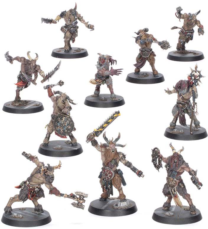 Detta kit innehåller delar för att bygga 10 Beastmen, anpassningsbara med olika huvuden och hornkombinationer för att skapa en varierad och personlig trupp. Du kan även bygga specialister som den psykiske Shaman, den muterade Mangler och den brutale Ironhorn-ledaren.