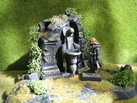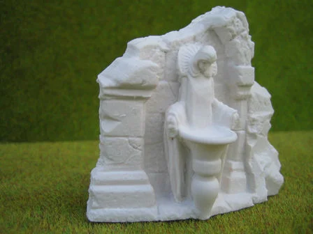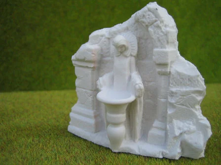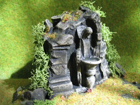 "The magic mirror is suitable in a dungeon, as well as a decoration in a building, ruin, room or a diorama. Not everyone dared to look at his possible future. And many holds not stand to what he sees. The oracle is cast out of high-quality resin and comes unpainted. On some pictures you can see a newly created terrain part. The figure shown Figure serves for size comparison. The copyright for this figure is the company ""Reaper"".