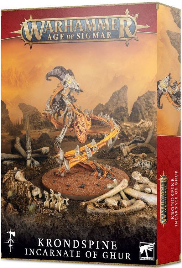 This multipart kit builds one Krondspine Incarnate of Ghur, a fearsome monster of pure amber magic that can be added to any faction in Warhammer Age of Sigmar. These maelstroms of primal power emanate from a massive chunk of amberbone - the potent realmstone of Ghur - and possess bestial skeletons to protect their crystalline hearts, drawing up a savage boneyard of horns, fangs, and talons suffused with swirling magical energies.