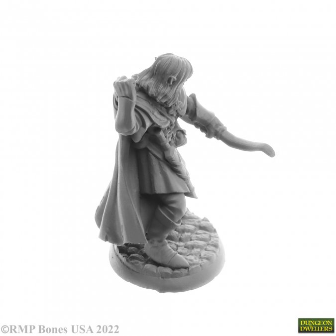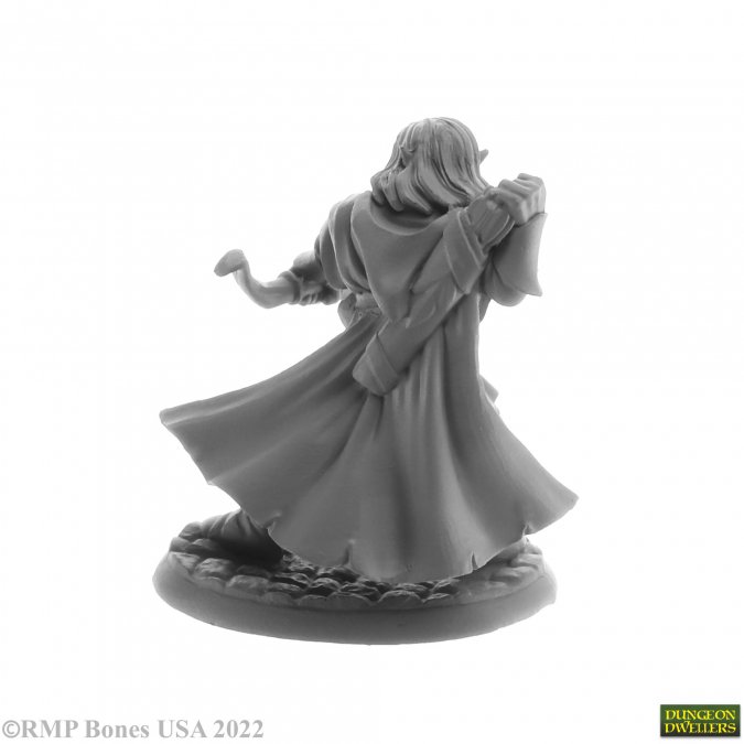 Lanaerel Grayleaf is perfect for all RPG and tabletop games. • Amazing detail sculpted by Bobby Jackson • Ready to paint or play with right away • 25mm Heroic Scale Fantasy Miniatures • Cast in Bones USA plastic!