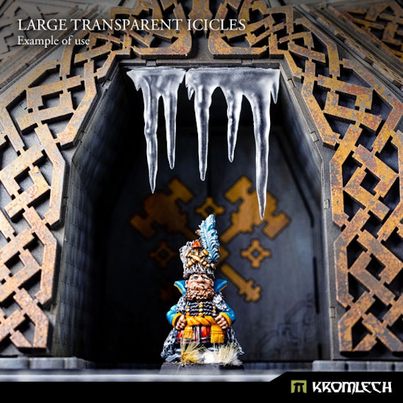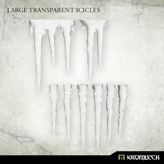 This set contains 8 high quality icicles casted in transparent resin. Their length varies from 3cm to 4.5cm. They can be used to decorate miniatures, bases and scenery. No two icicles are the same!