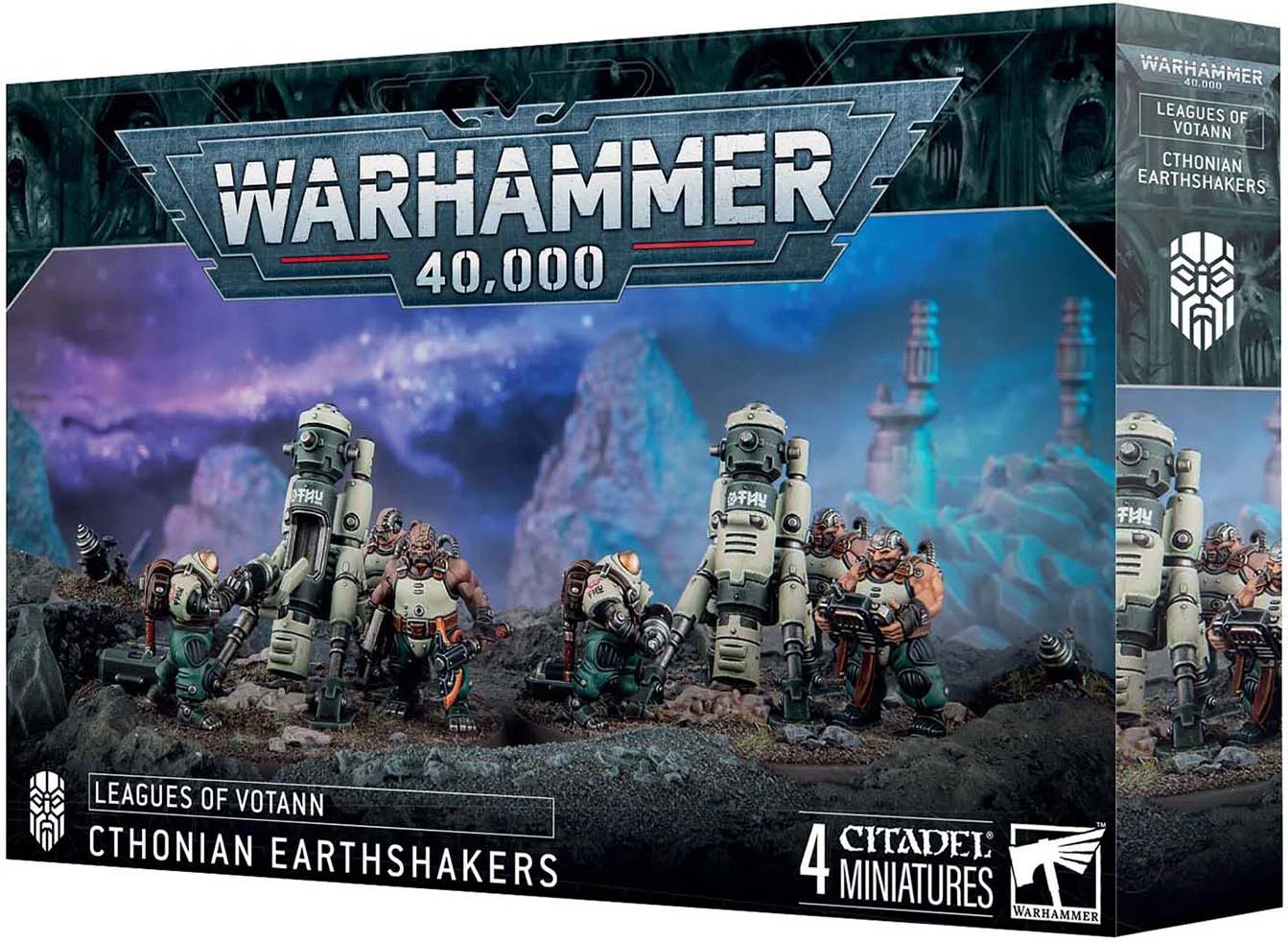 Cthonian Earthshakers undermine enemy positions with subterranean artillery fire. Some batteries use tremor shells to destabilise strongpoints with deadly quakes. Breacher ordnance, meanwhile, drills to the surface before detonating in a storm of shrapnel, whilst those payloads which initially fail to lock onto their targets hunt them down using geomantic echolocation.