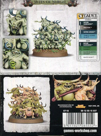 This multi-part plastic boxed set contains 16 components with which to build 3 varying towers of Nurglings. Supplied with 3 Citadel 40mm Round bases.