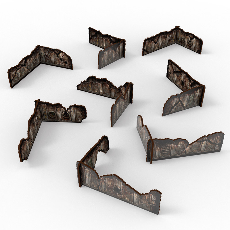 The pre-painted terrain set includes 8 L-walls, the standard quantity commonly used on competitive Warhammer 40,000 boards, and they also fit perfectly in other 2832mm futuristic skirmish and wargames such as Kill Team, Necromunda, Infinity, Zombicide: Invader, Deadzone, Core Space, Stargrave, and more.