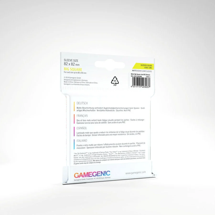 Matte Big Square Sleeves (82x82 mm) 50 (Code Lime)