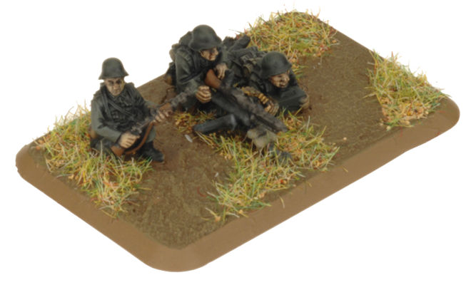 The heavy machine-guns of the MG platoon are essential for setting up a base of fire to support an infantry assault or destroy a Soviet human wave attack. Mounted on a tripod for long-range accuracy and with plenty of ammunition, it is an excellent defensive weapon. The company's heavy machineguns are allocated to the most exposed platoons.