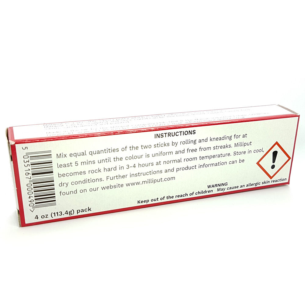 Typical uses of Milliput: Filling dents and scores in metal, plastics or woods Repairing water and fuel systems Caulking, filling and sealing on fiberglass, metal and wooden boat decks and hulls Modelmaking Jewellery making Sculpting Picture frame restoration Plumbing repairs Underwater applications Temporary repairs for car petrol tanks, batteries, radiators and exhausts.
