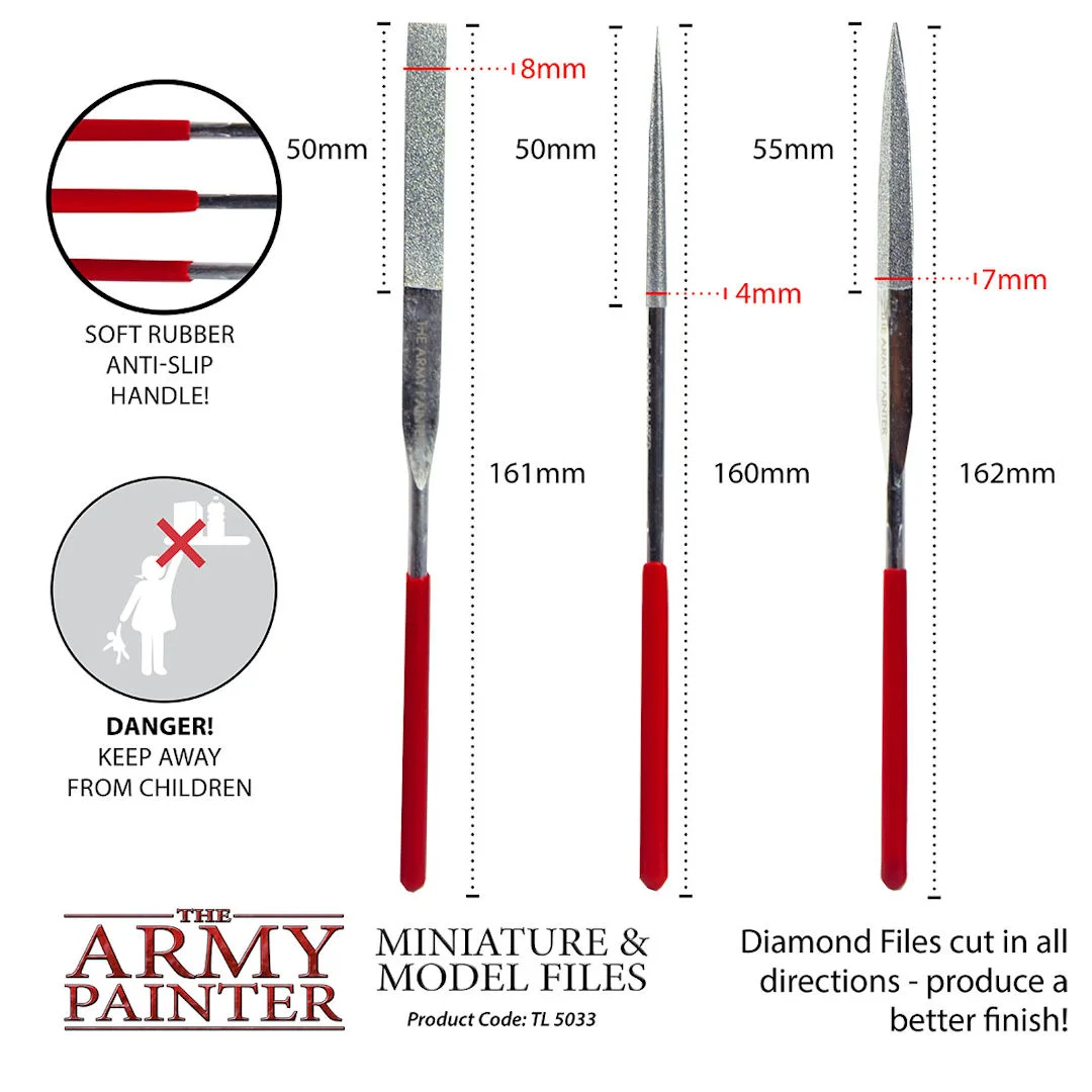 These diamond files are extremely versatile tools for the wargamer & hobbyist. A must-have for custom conversions and cleaning mold lines, as well as preparing pieces for gluing.