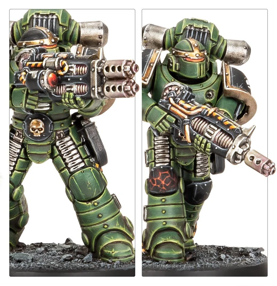 Veteran Squads are found within every chapter and company of the Space Marine Legions. Made up of experienced warriors, some squads have been in active service since the early days of the Great Crusade. Many of these units will be permitted to carry specialist or more dangerous or rare weapons, allowing them to apply deadly firepower where it is required, and setting an example for their less-experienced brethren.