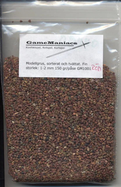 Sorterat och tvättat grus för modell/terrängbygge 150 g/påse. Mesh ca 1-2 mm. Naturröd.