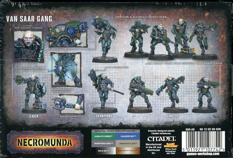 House van Saar är ett av de mäktiga gängen/husen i Necromundas Underhive. Deras styrka bygger på de mest högteknologiska vapnen och utrustningen, mycket bättre än någon av deras rivaliserande gäng. Dock ligger en mörk hemlighet bakom deras kraft...