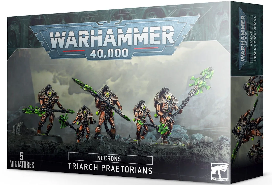 This multi-part plastic boxed set contains 111 components, five Citadel 32mm Round Bases and two Necron transfer sheets with which to build five Necron Triarch Praetorians or five Lychguard.
