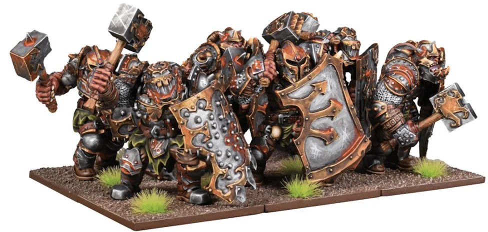 Siege breakers are ogres who specialise in breaking down castle gates – they carry hugely destructive hammers and protect their advance using giant tower shields. An ogre can only afford such tools if they are veterans of a mercenary company, as each set of armour, weapons and shield uses enough metal to armour a regiment of human knights. Warriors of such skill and wealth are rare, which is a relief to most human lords who hire or battle the ogres. Contents: 1x Plastic Ogre Infantry Sprue 2x Resin Ogre Siegbreaker Ugrade 6x MDF 40mm Square Bases