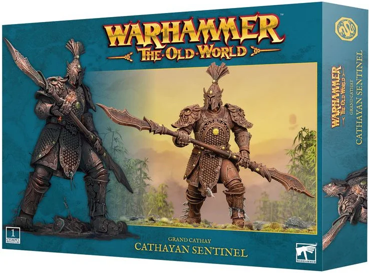 This multipart plastic kit builds one Cathayan Sentinel, a living statue for your Armies of Grand Cathay in games of Warhammer: The Old World. Tough and deadly, a single Sentinel is capable of turning the course of a battle in your favour. Use them offensively to smash through enemy lines or defensively as an anvil for your foe to break upon. Towering over regular infantry, the Cathayan Sentinel is a fine centrepiece for your collection.