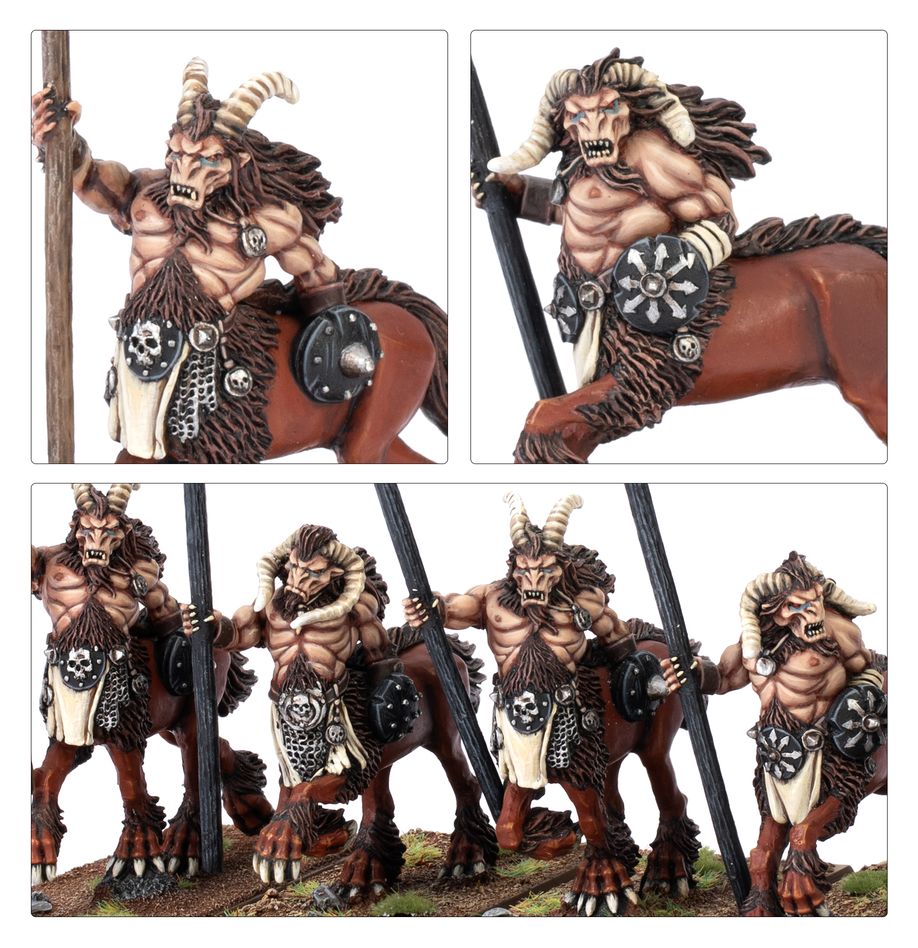 Centigors are powerful creatures, strong of limb and fleet of foot. They are bitter, spiteful creatures that will often join the Warherd of a Beastmen Chieftain, for the rewards of violence and plunder from such an allegiance are great.