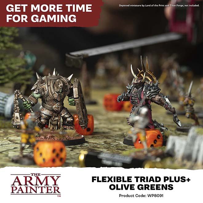 This paint set features not only the complete Olive Greens Flexible Triad, but