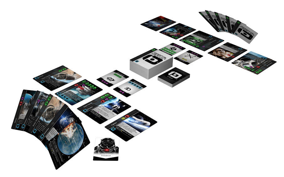 Noteworthy mechanics are no hand limit, that station cards can extend by being placed on top or below existing once. Claimed investor cards have a mini-game like mechanic where they are pushed from the right or left.