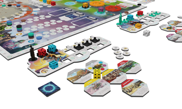 - Visit an encounter site with your workers to gain resources and additional citizen or speaker dice, advance on the zodiac temple tracks (and potentially gain zodiac cards), and advance and attack on the military track.