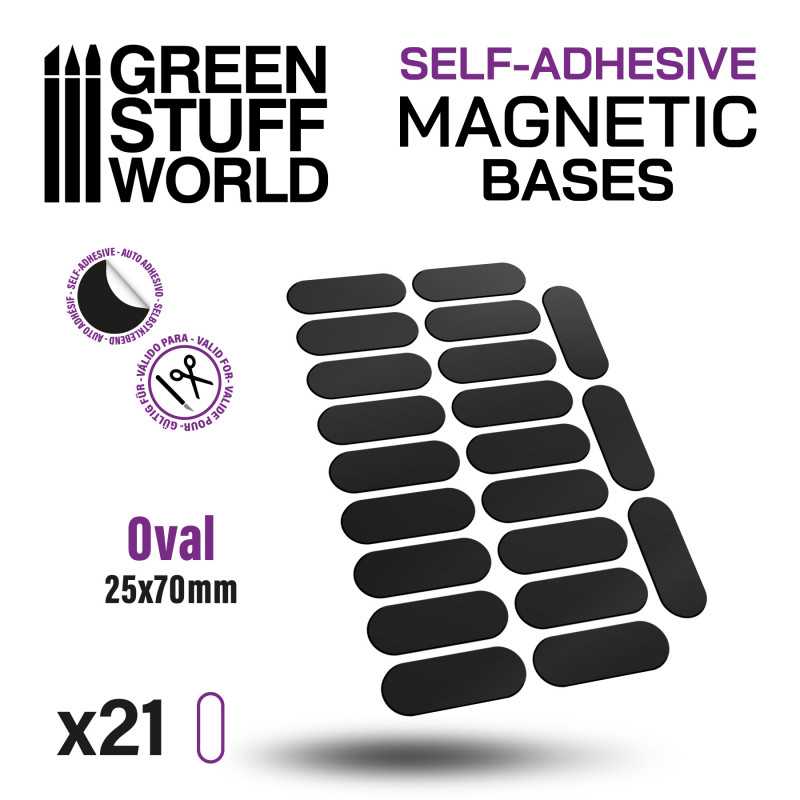 Self-adhesive flexible magnetic sheets provide a quick and simple way of magnetizing your wargames units without the necessity of drilling bases and gluing magnets. Square, rectangular, round, and oval most common shapes are available in a variety of sizes, but also as complete sheets to be cut to convenience with a pair of scissors or a craft knife. Use them alone, together with rubber steel sheets, or together with Neodymium Magnets depending on the attraction strength needed. Using magnetically-based figures allows you to field large units on the tabletop on their movement trays as one item. This removes the time spent moving figures one-by-one across the table. Even if the trays are knocked or tipped, you have a good chance of your figures staying attached and undamaged. Applying is very easy. Simply take the protective paper off the underside of the magnetic foil and stick it to the bottom of the bases. The thickness of the stickers is 0,9mm.