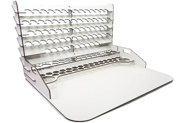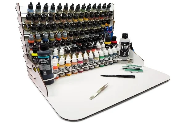 Paint display and work station with vertical storage 50 x 37 cm